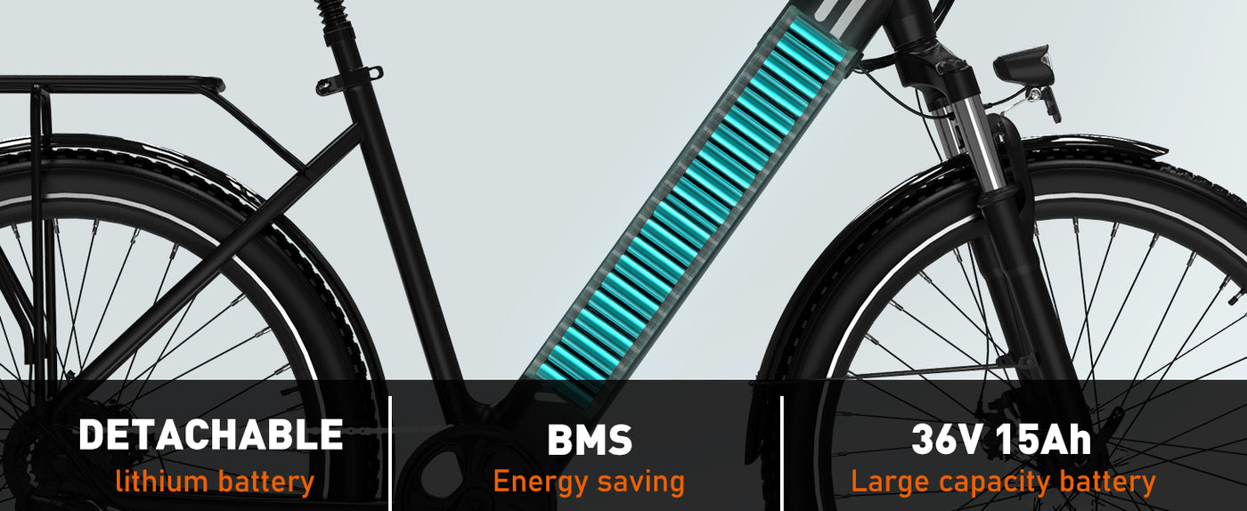 The BK18 is equipped with a high-capacity 36V 15Ah battery, ensuring that your journeys are never cut short. With this large battery, you can enjoy extended rides without the constant worry of running out of power. The best part? It's easily removable for hassle-free charging wherever you go.