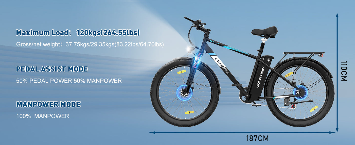 Two Riding Modes: Includes Pedal Assist Mode and traditional Pedal Mode (no throttle). The electric bike features an LCD display that shows remaining battery power. When the battery is depleted, you can still ride it like a regular bike.